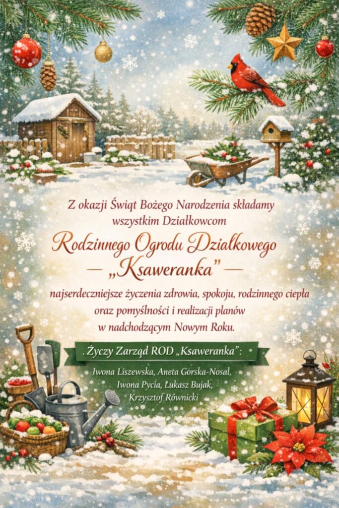 Z okazji Świąt Bożego Narodzenia składamy wszystkim Działkowcom Rodzinnego Ogrodu Działkowego „Ksaweranka”